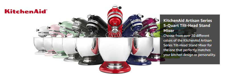 Choose from over 20 different colors of the KitchenAid Artisan Series Tilt-Head Stand Mixer for the one that perfectly matches your kitchen design or personality. Easily make your favorite cakes and multiple batches of cookie dough with the 5-quart stainless steel mixing bowl with comfortable handle. With 10 speeds, the standmixer will quickly become your kitchen’s culinary center as you mix, knead and whip ingredients with ease. And for even more versatility, the power hub fits optional attachments from food grinders to pasta makers and more.