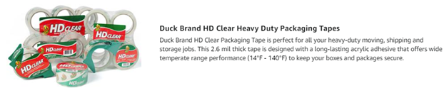Duck HD Clear Heavy Duty Packing Tape Refill, 6 Rolls, 1.88 Inch x 54.6 Yard, (441962)