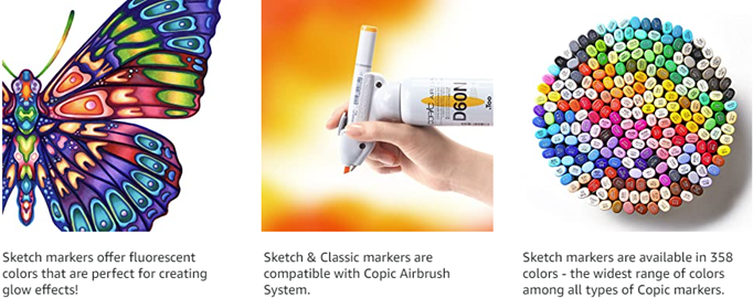 Copic Sketch has been a popular working tool around the world in many fields such as design, illustration and fine art. All Copic markers are made in Japan with rigorous quality control.