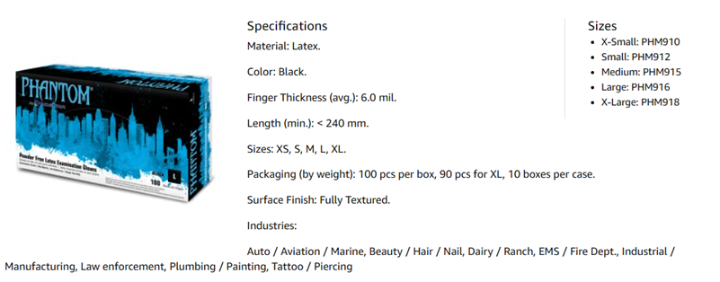 Phantom Latex Exam Gloves have the lowest allowable protein claim by the FDA to minimize natural rubber latex sensitivity. Though powder-free the fully textured surface provides an excellent nonslip grip in wet or dry application. Smooth interior finish for easy donning and comfortable wear.