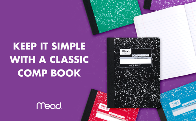 This Mead Composition Book is the classic choice for journaling and lab notes. Sheets measure 9 3/4" x 7 1/2". With 100 double-sided, wide ruled sheets, you’ll have plenty of space to take notes, journal, draw and more. Wide ruling is ideal for the younger student who needs more space between lines. Smooth binding keeps pages securely in place and won’t snag on your clothing or backpack. Black marble cover that includes a class schedule, multiplication tables, conversion tables and grammar rules. Sewn binding is smooth and keeps pages securely in place. Lays flat on any surface. Pack includes 12 composition books.
