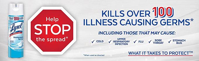 LYSOL Disinfectant Spray is a hospital-grade spray and kills 99.9 percent of viruses, including norovirus, which causes the stomach flu. It also eliminates 99.9 percent of bacteria and fungi, helping to control the growth of mold and mildew, remove odors, and prevent seasonal colds, flus, and allergies.
