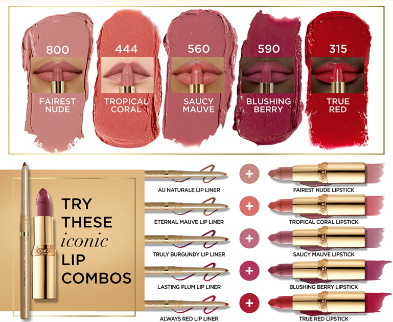 - L'Oreal Paris Lipsticks: Whether you want a bold red lipstick or the perfect nude, you can choose a color for every occasion; Choose matte lipstick for highly pigmented shades or choose creamy lipstick colors for smooth, soft and hydrated lips
