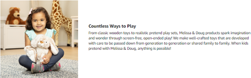 • “THE GOLD STANDARD IN CHILDHOOD PLAY”: For more than 30 years, Melissa & Doug has created beautifully designed imagination- and creativity-sparking products that NBC News called “the gold standard in early childhood play.”