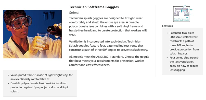 • A classic splash goggle line, Technician is a style that already has the confidence of many workers