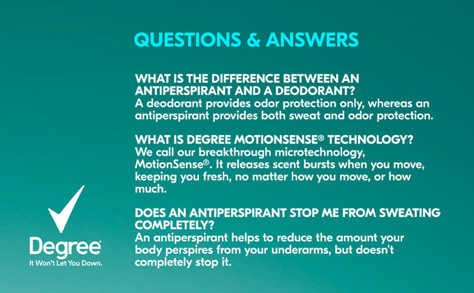 Degree Clinical Protection Summer Strength Antiperspirant Deodorant delivers prescription strength wetness protection, so you can face the day with confidence. This antiperspirant for women features 72 hour sweat and odor protection and the summer scent of green apple and peach, blended with notes of gardenia, jasmine and rose for an invigorating, clean feeling. Only Degree has MotionSense technology that moves in sync with your body. This clinical strength antiperspirant deodorant releases a burst of subtle fragrance every time you move, for nonstop protection. Degree Clinical Protection Summer Strength Antiperspirant Deodorant keeps you feeling fresher, drier, and more confident. This powerful antiperspirant deodorant responds when you need it most so that you don't have to worry about slowing down. Simply swipe and start moving. This antiperspirant deodorant for women with an invigorating scent gives you the confidence to keep moving all day long. Degree Clinical Protection Summer Strength Antiperspirant Deodorant keeps you feeling cool, fresh and protected from sweat and odor. Degree gives you the confidence to keep moving, however you move. At Degree, we want to inspire the confidence in everyone to move more and go further. We’re here to support your journey through an antiperspirant that moves with you and helps you go beyond your limits. As well as increasing our use of reusable materials, we’re making it easier for you to recycle our antiperspirant and dry spray packaging. Degree. It won’t let you down.