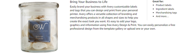 If you’re looking to include some rustic, earthy flair to your next handcrafted gift or product, look no further than these kraft brown small square labels. The 2” x 2” printable labels are the perfect finishing touch for adding artisanal charm to any project. Our Print-to-the-Edge feature allows you to create eye-catching full bleed labels with sharp text and crisp images printed with no border or margin. Labels are quick and easy to apply with our patented Easy Peel label sheets with Pop-up Edge. Simply fold the sheet back to display the label edges for convenient and fast peeling. Once applied, the permanent adhesive ensures the label stickers hold fast to smooth surfaces like paper, cardboard, plastic, glass and painted metals. Effortlessly create customized sticker labels with your own text, art and photos, or use the free templates from Avery Design & Print to design gift label stickers, lip balm, packaging labels, container labels, holiday labels and more. Try it out today on the Avery site. This item comes with 12 labels per sheet and includes 25 sheets for a total of 300 blank labels.