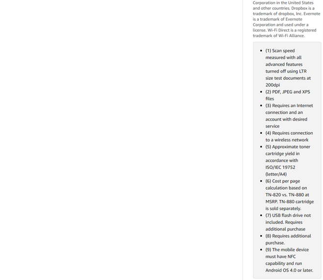 (1)Approximate toner cartridge yield in accordance with ISO/IEC 19752 (letter/A4). (2)Requires connection to a wireless network. (3)Requires an Internet connection and an account with desired service.
