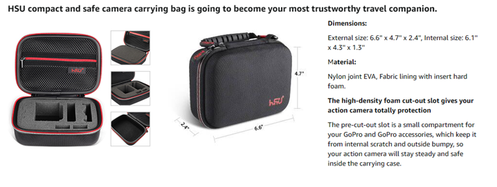 - Small Carrying Case by HSU is a Protective Case specially designed for GoPro Hero 10/9/8 Black,7 Black, 6,5, 4, 3+, 3, 2, 1,Hero(2018), AKASO Brave 7/6/4 EK7000 V50 V50X Campark Dragon Touch REMALI 4K and other action cameras