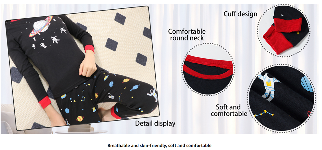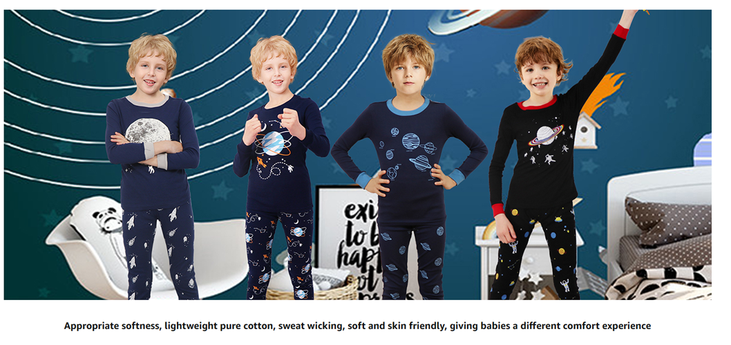 Family Feeling Space Little Boys Pajamas Sets 100% Cotton Clothes Toddler Kids