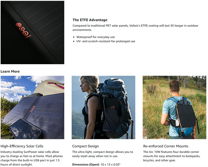 - TOUGH IN THE SUN - HIGH QUALITY, TESTED MATERIALS | The waterproof, UV, and scratch-resistant coating is built to last and go wherever you go. The 10 Watts / 5V folding panel uses ETFE coating instead of PET to last outside at least 3x longer than competitors’ products (5+ years)
