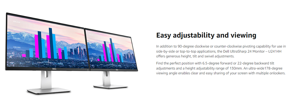 Dell UltraSharp U2414H 23.8” Inch Screen FHD 1080p LED Monitor
