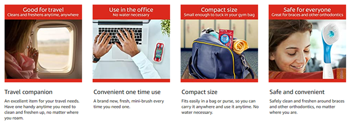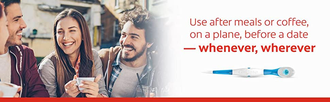 Get clean teeth and fresh breath on the go with the Colgate Max Fresh Wisp Disposable Mini Toothbrush, Peppermint. This pocket-sized mini-toothbrush, brush delivers the freshness of gum and the clean of a toothbrush in one effortlessly portable device. Its built-in, sugar-free peppermint bead easily dissolves and delivers a rush of minty freshness while the bristles gently remove food and other particles. A soft pick at the handle base of this disposable toothbrush removes food particles from any hard-to-reach areas. No water or rinsing is necessary. Recycle with Terracycle.