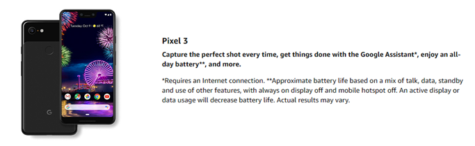 Meet the Google Pixel 3. Capture the perfect shot every time, get things done with the Google Assistant, enjoy an all-day battery, and more. A camera so good it deserves unlimited storage. Get everyone in the picture with Group Selfies—no selfie stick required. Snap portraits like a pro with Portrait Mode. Capture smiles, not blinks, for a great photo every time. And save all your favorite moments with free, unlimited photo storage. Charges fast. Lasts long. Pixel 3 comes with a battery that charges fast and wirelessly, and lasts all day. It's even smart enough to limit battery usage for the apps you don't use often to keep you going longer. Your Google Assistant. Get help from the Google Assistant: reserve a table at your favorite restaurant, buy tickets, get commute times, weather info, and more—all with a simple squeeze, or just by using your voice. Avoid unwanted calls. Screen spam, scams, and other nuisance calls. Get real-time transcription and block unwanted callers so you’ll never hear from them again. The joy of missing out. Disconnect from your phone when and where you want with Digital Wellbeing. It lets you focus on time with family and friends by setting timers on apps and turning off visual notifications. Use the wind down mode to turn the screen to gray scale and get ready for a good night's sleep.