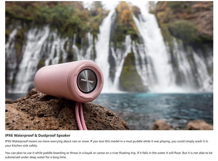 - [Rugged Cylinder - Shaped Housing] Mesh fabric provides enough grip to run with this portable speaker in your hands without worry about losing a grip. Both ends have rubberized tips that will prevent slippage when stood up and absorb potential damage and softly cushion the speaker after big falls. So this speaker is perfect for outdoor sports, such as skiing, golfing, biking, hiking & camping etc.