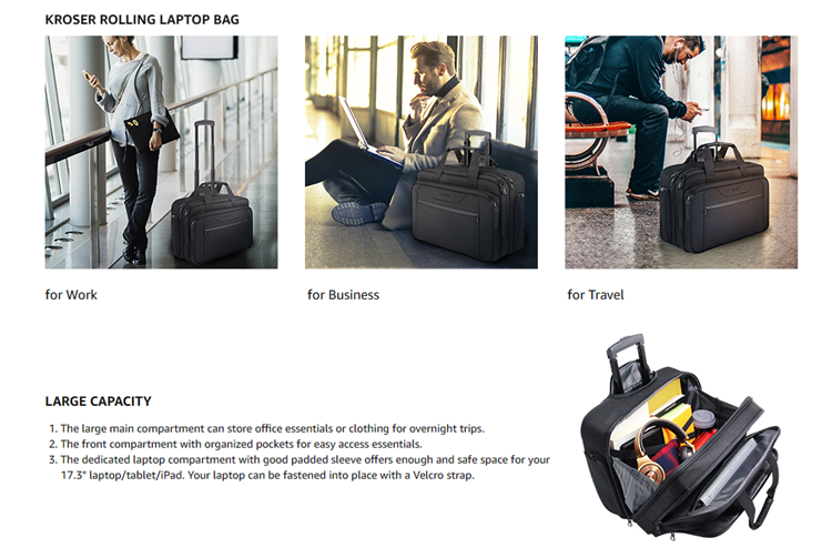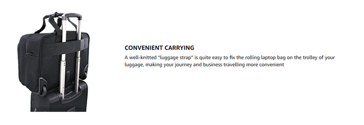 - GREAT CONVENIENCE: A well-knitted “luggage strap” is quite easy to fix the rolling laptop bag on the trolley of your luggage, making your journey and business travelling more convenient.