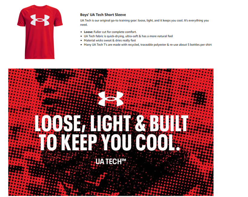 UA Tech fabric is quick-drying, ultra-soft & has a more natural feel.Material wicks sweat & dries really fast.Under Armour’s mission is to make all athletes better through passion, design and the relentless pursuit of innovation.Where we started? It all started with an idea to build a superior T-shirt.The technology behind Under Armour's diverse product assortment for men, women and youth is complex, but the program for reaping the benefits is simple: wear HeatGear when it's hot, ColdGear when it's cold, and AllSeasonGear between the extremes.