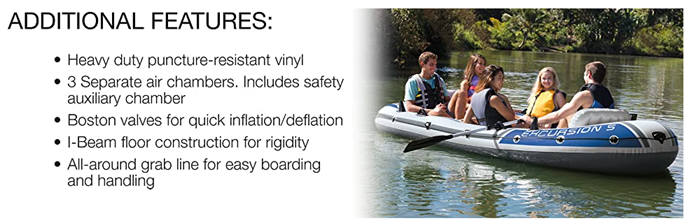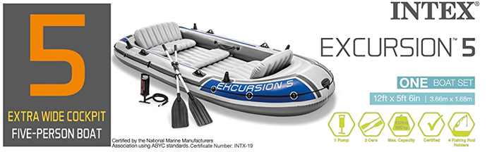 Model Name | Excursion 5 Inflatable Heavy-Duty Fishing Boat Set with Aluminum Oars and High Output Air Pump |