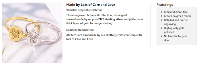 ?【Valuable Recycle Material】Made of solid 925 sterling silver with 18K yellow gold-plated, better color retention, the color is almost the same as the real gold, which is valuable and worthy