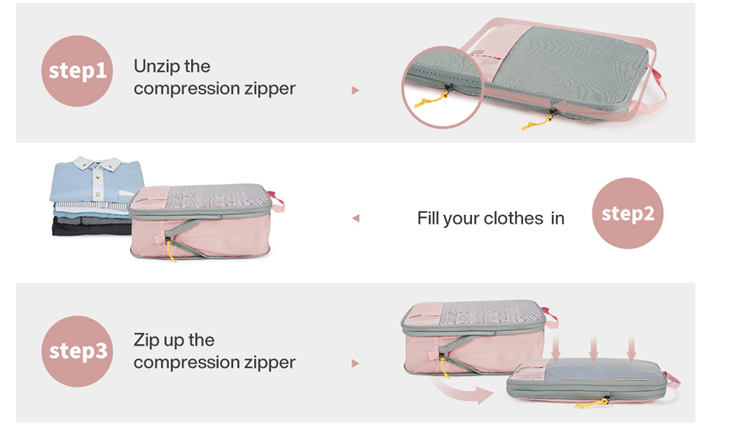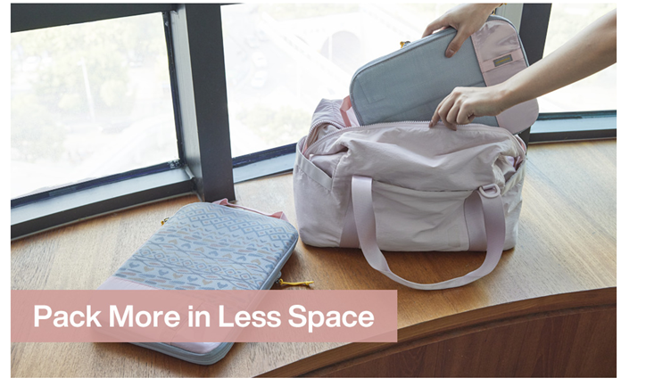 True Space Saving - This compression travel cubes is kind of like how a vacuum sealer works. Done by adding an extra zipper around the outside that can be zipped up to help squash clothes down and minimize the space inside. It’s remarkable how much of a difference they can make. Help travelers “Fit Double the Amount” in their suitcases.