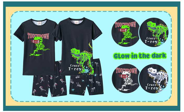 Feature: Special design, glow in the dark. Soft sleepwear top features round neck, short sleeve, pants with elastic waist band, moisture wicking, stretchy, non-slip and painless, easy on/off.