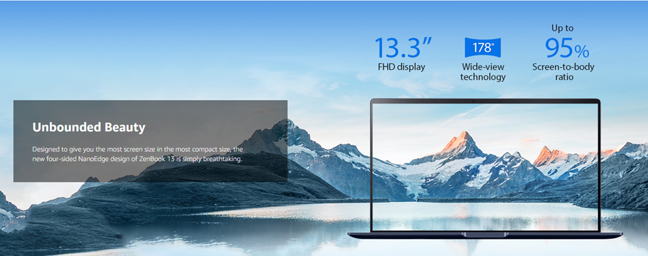 - 13.3 inch wide-view full HD 4-way NanoEdge bezel Display