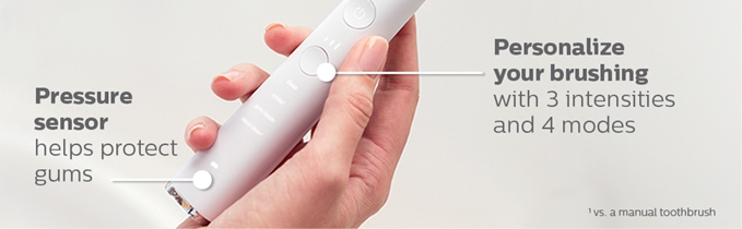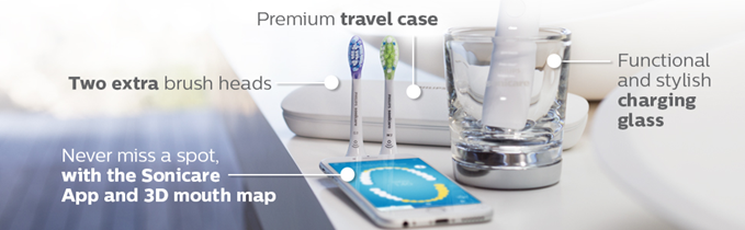 Get the ultimate and most complete care with DiamondClean Smart. Eliminate guesswork with real time feedback and personalized coaching so you can improve your technique and achieve 100% confidence in your oral care. It's more than just a toothbrush - it's a complete oral care solution. Featuring Sonic technology, 4 brushing modes and smart brush head mode pairing technology, the Philips Sonicare DiamondClean Smart Rechargeable toothbrush delivers superior plaque removal, gum health and whitening performance. Philips Sonicare DiamondClean Smart goes beyond traditional cleaning to deliver up to 10x more plaque removal*, removes 100% more stains in just 3 days** and improve Gum Health up to 7x in just 2 weeks*** . It also features a visual pressure sensor to alert you when you are brushing too hard. Customize your brushing experience using the 4 different modes and 3 intensity settings and know when to replace your brush head via a customized reminder. Its travel case allows you to take your toothbrush on the go and also includes a charging glass that can be used for charging or to rinse your mouth after brushing. *vs. a manual toothbrush ** vs. a manual toothbrush in white+ mode *** vs. a manual toothbrush in Gum Health mode. Subscribe & Save on genuine Philips Sonicare brush head replacements and save up to 15%.