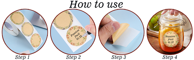 - Versatile: Widely used for jams, sealed envelopes, gift sticker labels, can labels, spice labels, bottle labels and any smooth surface. Make sure the surface is clean and dry before applying the label.