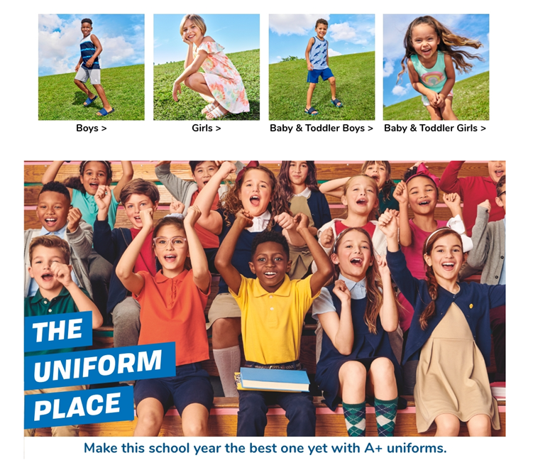 - THE CHILDREN'S PLACE — We offer a huge selection of kid's clothing! Shop us for jeans, shorts, leggings, chinos, polo shirts, dresses, pajamas, and accessories.