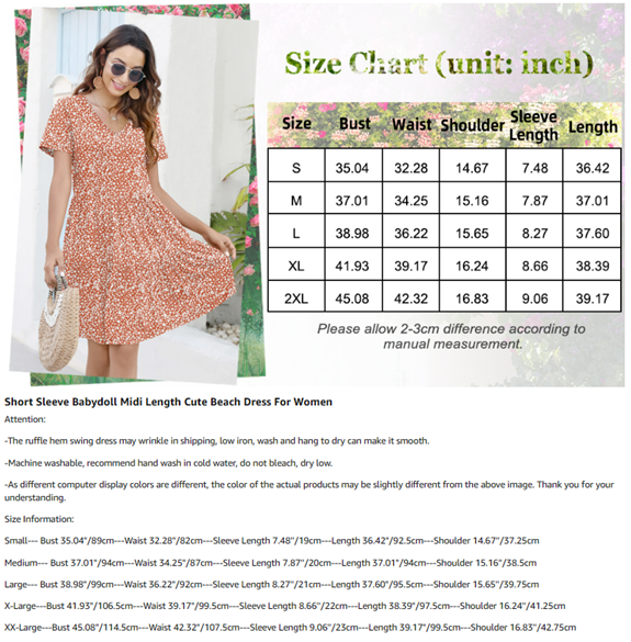 Notes: Machine or hand wash with cold water, do not bleach, no dry clean. No wrinkle, no shrinkage, no fading. Please refer to size chart carefully before purchasing this sun dress/sexy dresses for women/sun dresses women summer casual/floral dress for women/tshirt dresses for women/boho dress for women.