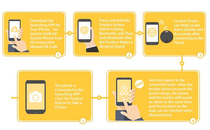- Convenient to Use: download the APP from the user's manual and it will work, the GPS trackers are easy for your operation, and you just need to press the button for a few seconds, then the receiver will sound beeps, after that you can use your cellphone to search and connect to the device, if you lost your phone, you can double press the button, then your phone would alarm
