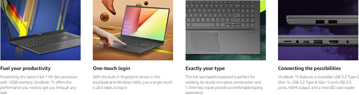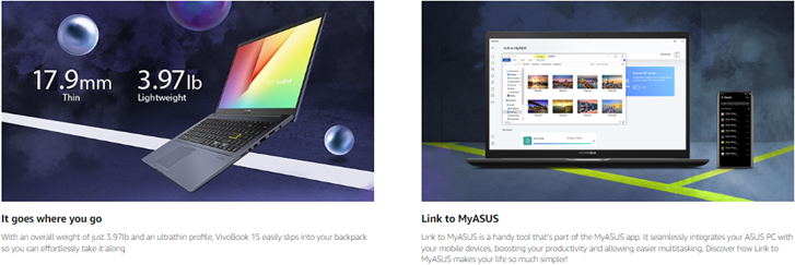 With standout colors and a color blocking Enter key, ASUS VivoBook 15 OLED adds flair and dynamism to daily computing. With its AMD Ryzen processor, VivoBook 15 OLED provides the power you need to get things done. It also features fast data speeds of an SSD, giving you the best of both worlds in order to boost productivity. For Free Windows 11 upgrade eligible devices, visit ASUS Windows 11 website for more information.
