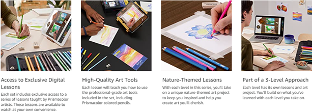 Learn art at your own pace from the comfort of home with Prismacolor Technique. Each Prismacolor Technique set features a unique coupon code for access to digital art lessons you can’t get anywhere else. Instructed by Prismacolor artists, each lesson will teach you how to use the professional-grade art supplies included in the set to create a piece of art you will cherish. The Level 3 Nature Drawing Set is designed for those who have built up some skill and confidence in art. You’ll learn how to take your skills to the next level by recreating any landscape or nature photo using reference grids. The set features Prismacolor colored pencils with rich cores for smooth color laydown and an artist roll case so you can store and carry your art tools. You’ll also receive graphite pencils, a clear reference grid overlay, a colorless blender, an eraser, a drawing pad, a mini sharpener, a drawing template with grid, a set of instructions, and hours of online content to learn at your convenience!
