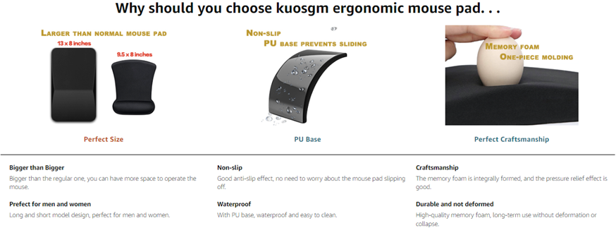 - ONE-PIECE MOLDING ?It adopts 100% memory foam one-piece molding design scheme, with wrist support as the center, which greatly increases the bearing capacity while maintaining high-speed rebound and stability without collapsing, making your wrist more comfortable.