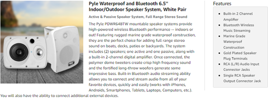 - BLUETOOTH CONNECTIVITY: The weatherproof integrated loudspeaker system is equipped w/ Bluetooth wireless music streaming. Works with today’s latest devices including iPhone, Android, smartphone, iPad, tablet, PC, etc w/ hassle-free receiver pairing