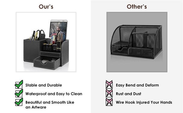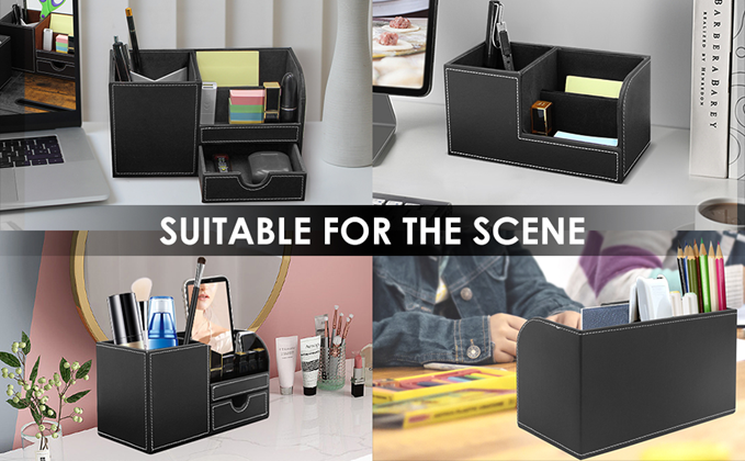 - Convenient: The pencil holder is divided into 4 parts, and the display area includes 1 drawer and 2 racks. So, you can organize your items neatly, and find them quickly.