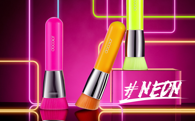 Foundation Brush Docolor Flat Top Kabuki Foundation Professional Synthetic Makeup Brush Perfect for Blending Liquid Cream or Powder Cosmetics Full Coverage Face & Body Brush Premium Makeup Tools, Neon