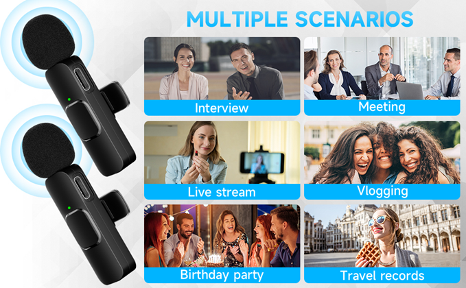 Compatible Devices | Wireless Lavalier Microphone, PQRQP Wireless Lavalier Microphone, PQRQP Dual Wireless Lavalier Microphone, Wireless Microphone, Smartphone |