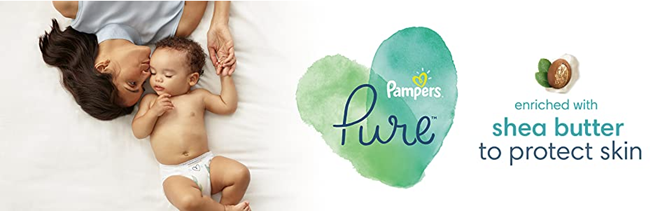 Your search for pure protection that works is over! Designed to help skin stay dry and healthy, Pampers Pure Protection diapers lock wetness away from skin for up to 12 hours for outstanding leakage protection with skin-loving care. Plus, our designer, boutique prints make Pampers Pure just as precious as they are protecting. We've thoughtfully chosen all of our ingredients to care for your baby's precious skin. Our exclusive, plant-based liner** is enriched with shea butter to help nourish and protect skin while our outercover is enhanced with premium cotton, making Pampers Pure Protection diapers irresistibly soft and breathable. But the ingredients we've chosen to leave out are just as important. That's why Pampers Pure Protection diapers are free of chlorine bleaching, fragrance, parabens, and latex* and are hypoallergenic. *Natural rubber **Plant-based and polypropylene blend The Seal of Cotton and cotton enhanced are trademarks of Cotton Incorporated. cotton enhanced soft outercover contains 15% cotton.