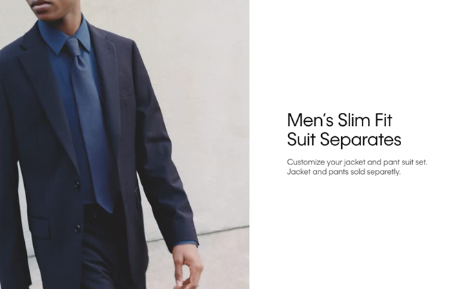 • The advantage of the Calvin Klein Slim Fit Suit Separate is the ability to customize your jacket and pant size. Select your sizes and add them to the cart separately.