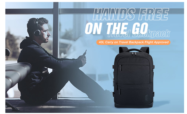 AIRLINE APPROVED: Travel backpack size: 20.47*13.38*7.87 inches. Maximum capacity: 40L, carry-on backpack meets the size required by almost all major airlines and fits in the overhead compartment and under the seat. Of course the lie-flat opening design helps you get through security quickly. This travel backpack is perfect for weekend trips, business trips, hiking, camping, etc.