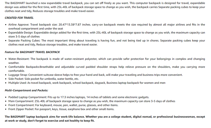 UPGRADE ITERATION: Expandable design added for the first time, with 25L-40L of travel backpack storage space to change as you wish, the maximum capacity can store 3-5 days of clothes. Of course, it does not stop there, the backpack also has a built-in elastic band, which can be compressed clothing, prevent clothes from falling, maximize the use of the backpack storage space, saving an additional 10% of capacity.