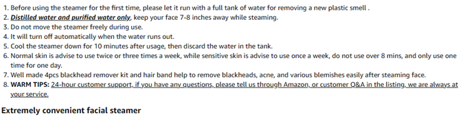 - 【Easy to use and convenient】: Just add water, connect the power and turn on the steam switch, wait for 3-5 minutes, you can enjoy luxurious professional salon skin care at home; NOTE: ONLY DISTILLED WATER or PURIFIED WATER can be added. Your safety is always our top priority. 24-hour customer support, if you have any questions, please tell us through Amazon, or customer Q&A in the listing, we are always at your service.