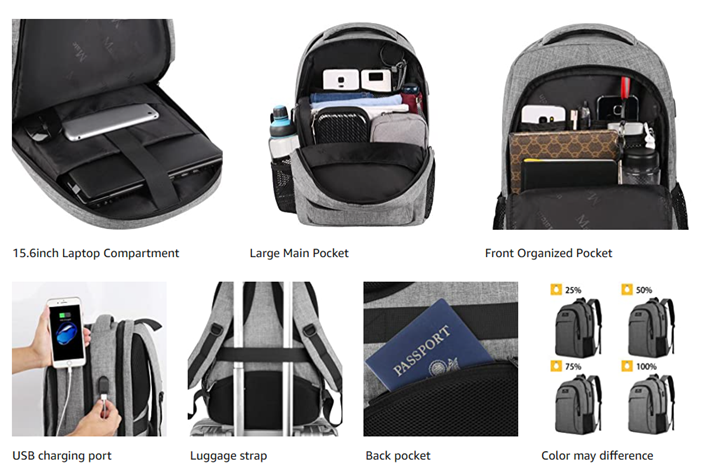 ★USB PORT DESIGN: With built in USB charger outside and built in charging cable inside,this usb backpack offers you a more convenient way to charge your phone while walking. It's a great tech gift for him from wife, daughter and son. Please noted that this backpack doesn't power itself, usb charging port only offers an easy access to charge