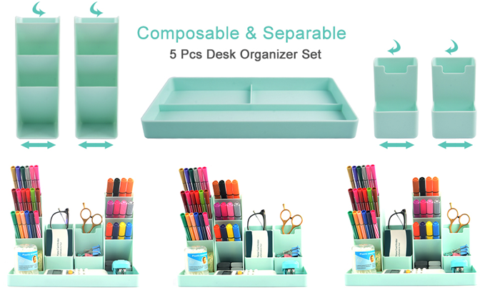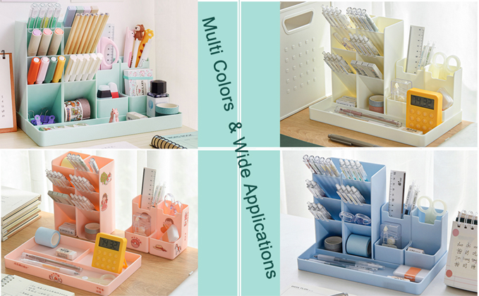 - ✅【CREATIVE DIY DESIGN】- This cute desk pen organizer for kids features 4 holders (2 high diagonal holders and 2 short vertical holders) and 1 tray, those can be freely combined. Changeable combinations will make your desktop more colorful and eye-catching, and it's full of fun when you combine the office items organizer for desk.