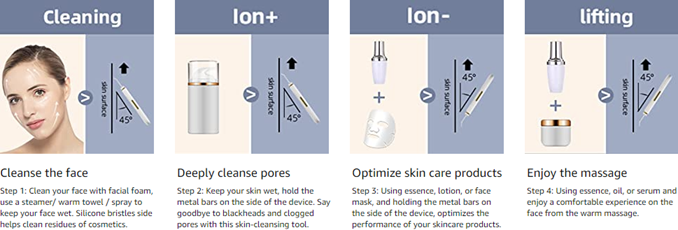 - Skincare Assistant: The skin scrubber can combine with skin care products, and optimize the performance of the cream and essence up to 20 times. Enjoy a comfortable experience on the face from the warm massage.