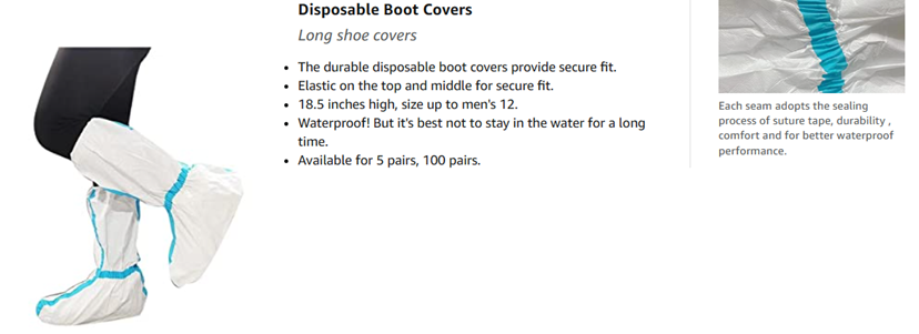 - The disposable long shoe cover is made of Polypropylene & Polyethylene, waterproof, non slip, comfortable and breathable.