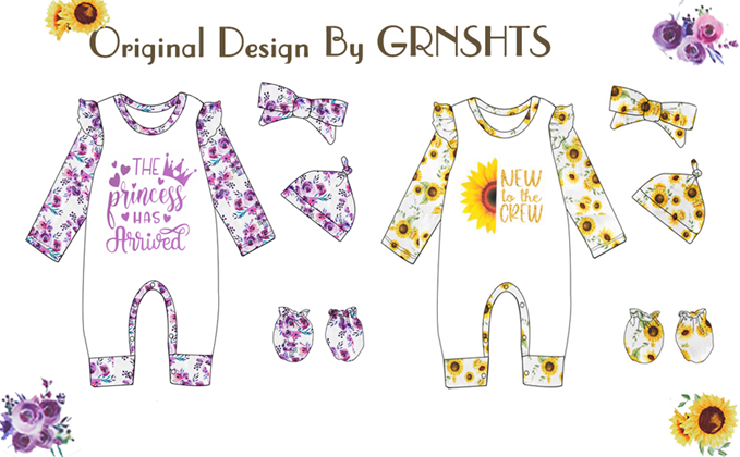DESIGN:Cute newborn romper. Baby romper features classic o-neck, long sleeve, soft cotton floral print shirt one-piece baby grow romper bodysuit, letter “New to the Crew" " the princess has arrived" at front, Convey the meaning of welcome.
