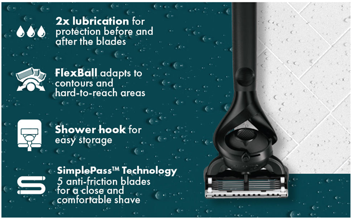 Meet Gillette's gentle and easy intimate shaving lineup that shows the proper respect for your region. Gillette Intimate Razor is engineered to gently shave below the waist with minimal nicks and cuts. The SimplePass™ technology featuring 5 sharp, anti-friction blades provides a close and comfortable shave in the delicate pubic region in a few passes. Enjoy added glide and protection to your intimate shave thanks to the lubrication before and after the blades. The Flexball technology makes the razor easily adaptable to your contours, making shaving in hard-to-reach areas easy. The razor also comes with a shower hook to conveniently store and be ready whenever you need it. Replace the razor refill once the blades have become dull for optimal shaving results. With Gillette Intimate Grooming, you have a routine so simple and easy that you won't need to plan ahead. For a complete intimate grooming routine, use the entire Gillette Intimate grooming line to help prepare and protect pubic hair from shave irritation, and maintain your pubic hair & skin.