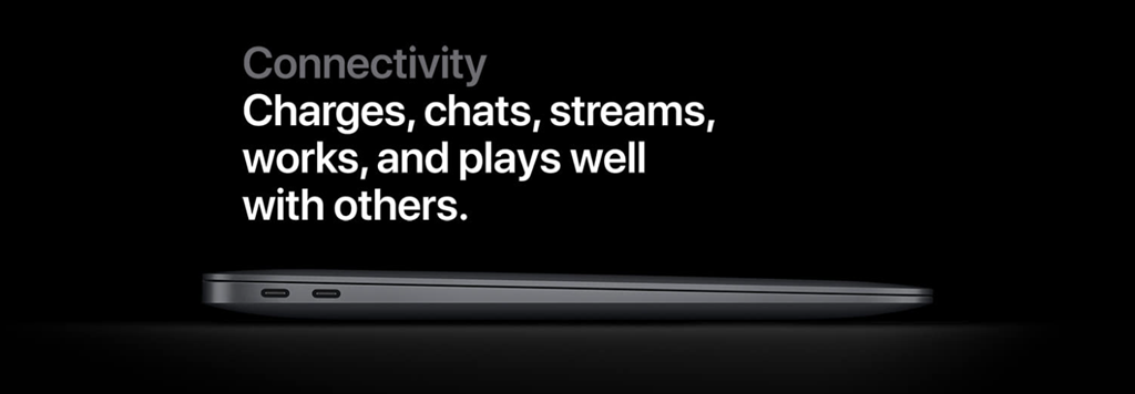 Charging and Expansion | Two Thunderbolt / USB 4 ports with support for: Charging, DisplayPort, Thunderbolt 3 (up to 40 Gbps), USB 3.1 Gen 2 (up to 10 Gbps) |
